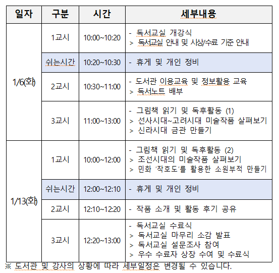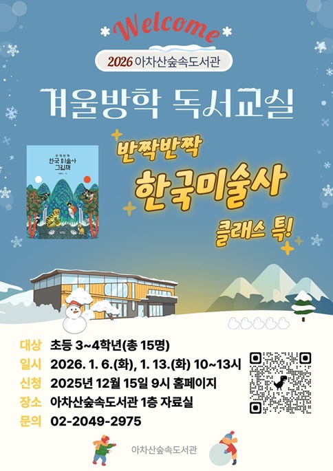 | 비고 | [2026년 아차산숲속도서관 겨울방학 독서교실] 반짝반짝 한국 미술사 클래스 특! |