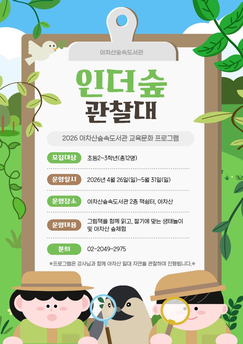 | 비고 | [교육·문화] 도서관 인더숲(아차산 관찰대 2기)(초등 2~3학년) |
