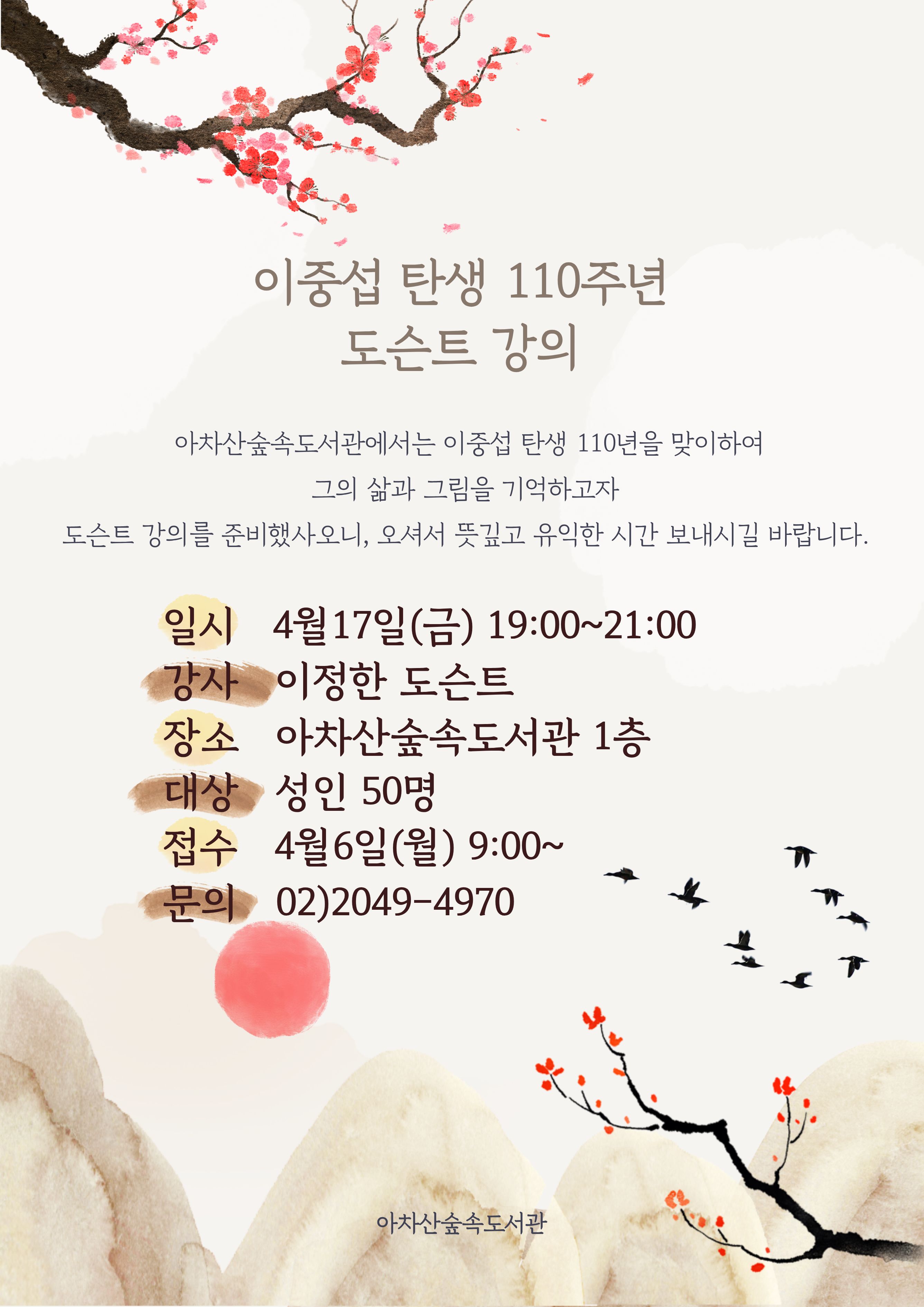 | 비고 | [도서관주간] 이중섭을 만나는 시간: 이중섭 탄생 110주년 도슨트 강의 |