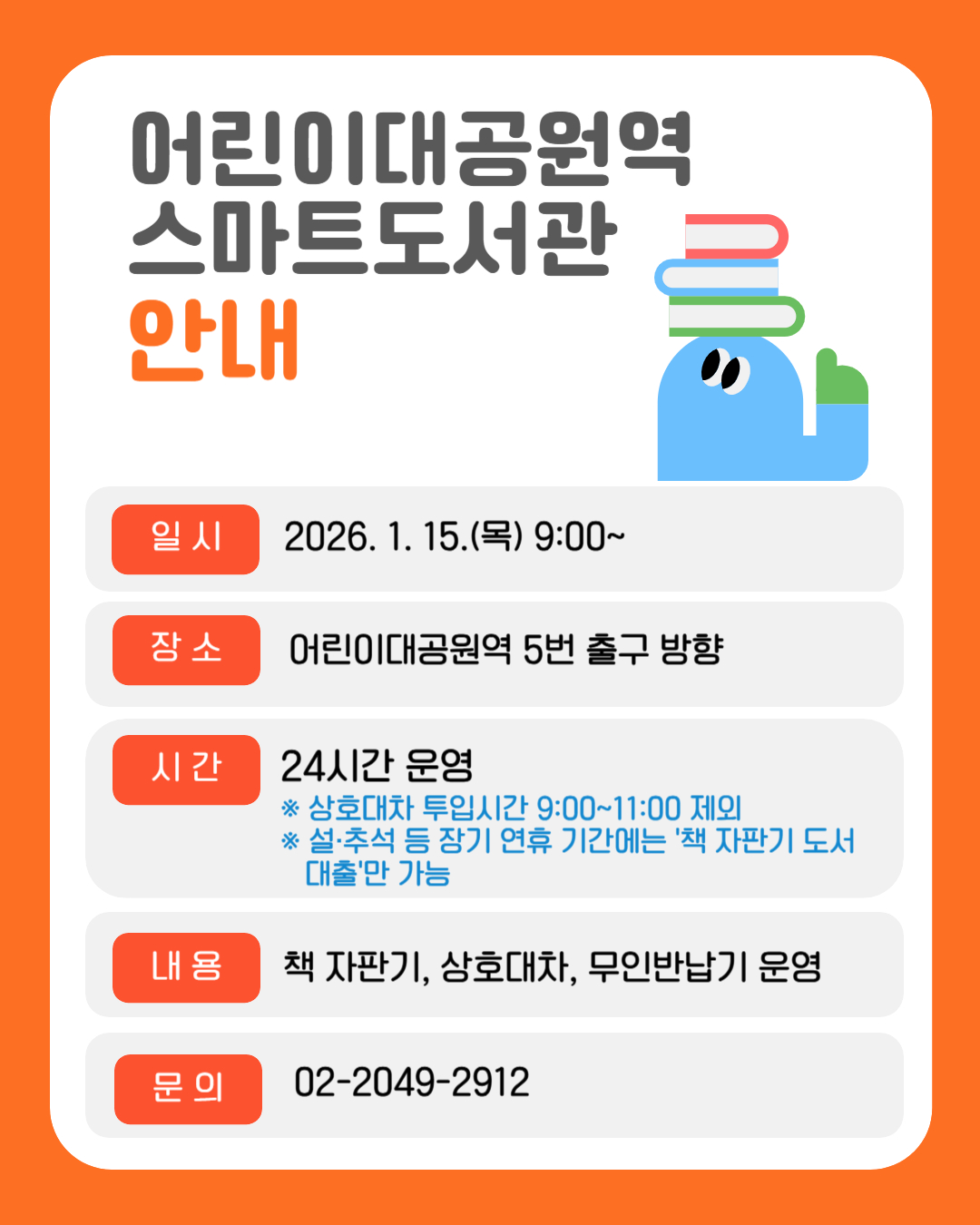 | [어린이대공원역 스마트도서관] 운영 안내(2026. 1. 15. 개관) | |