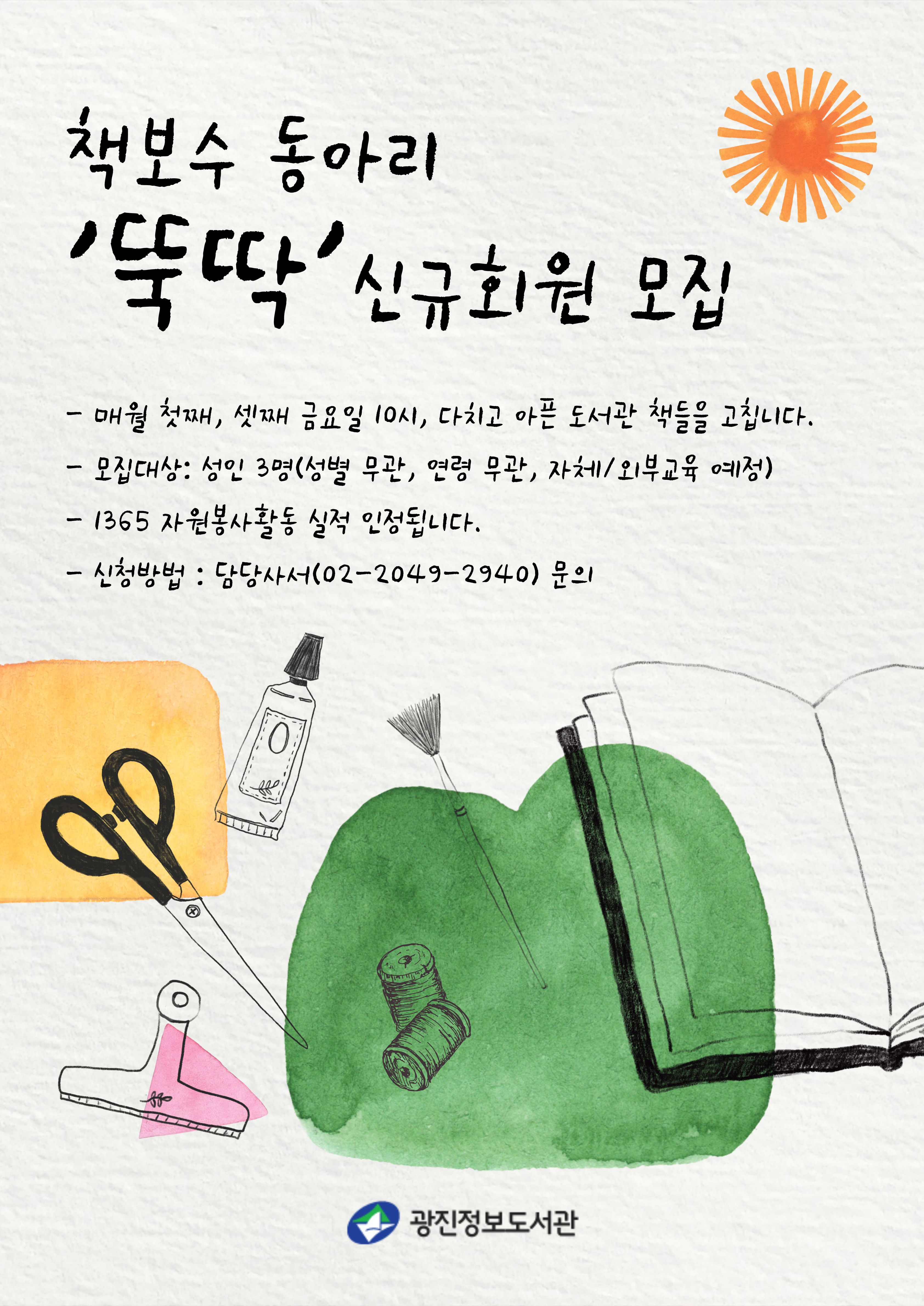 | 광진정보도서관 책보수 동아리 '뚝딱' 신규회원 모집(모집완료) | |